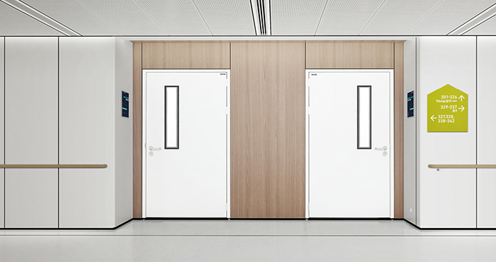 Design: Door leaf with single-side seam joint, equipped with an aluminum alloy vision panel. The door frame features a seamless surface finish for a clean, elegant appearance and easy cleaning.